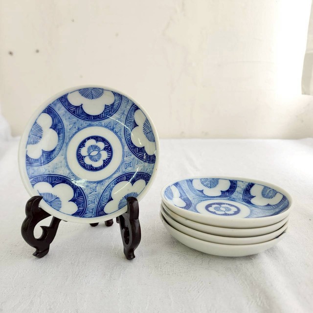 昭和初期 印判天塩皿 縁起物 梅5枚組 a