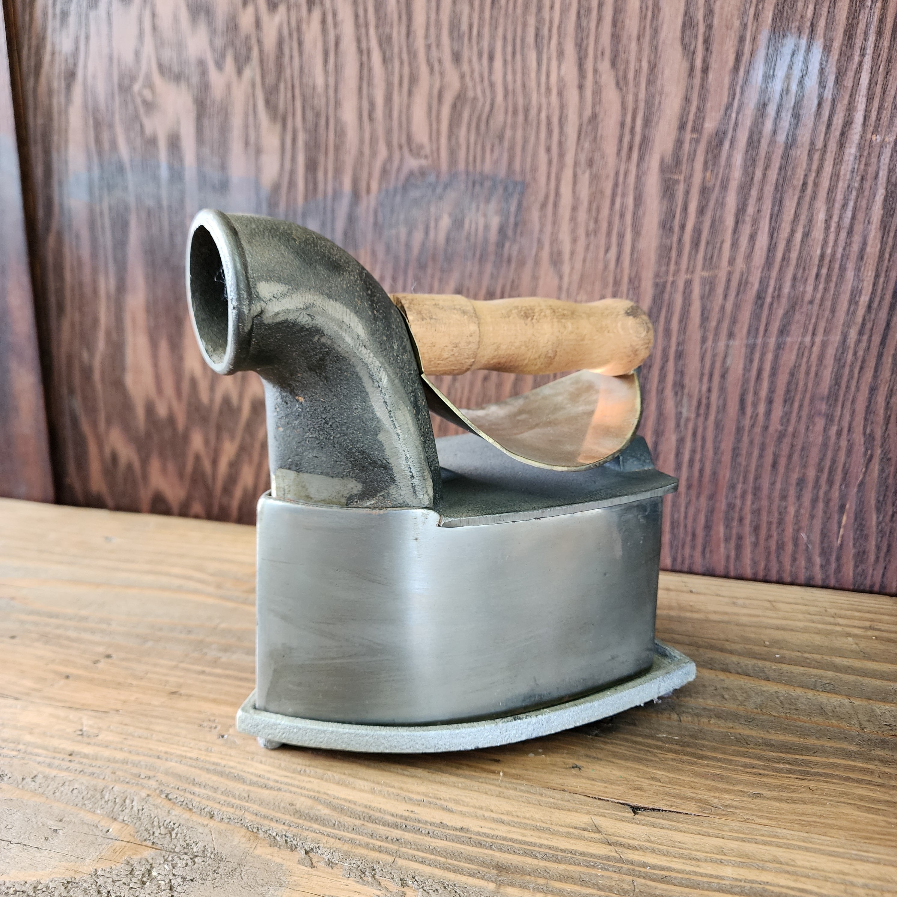 中に火のついた炭を入れて底面を熱し、その熱と本体の重さで布のしわを伸ばす、電気のない時代に使われていた道具です。