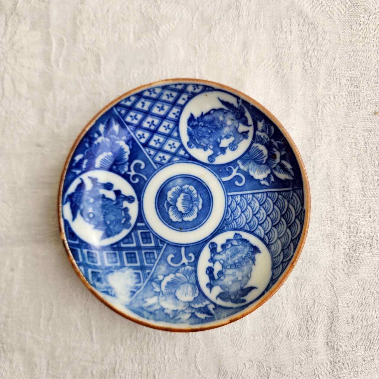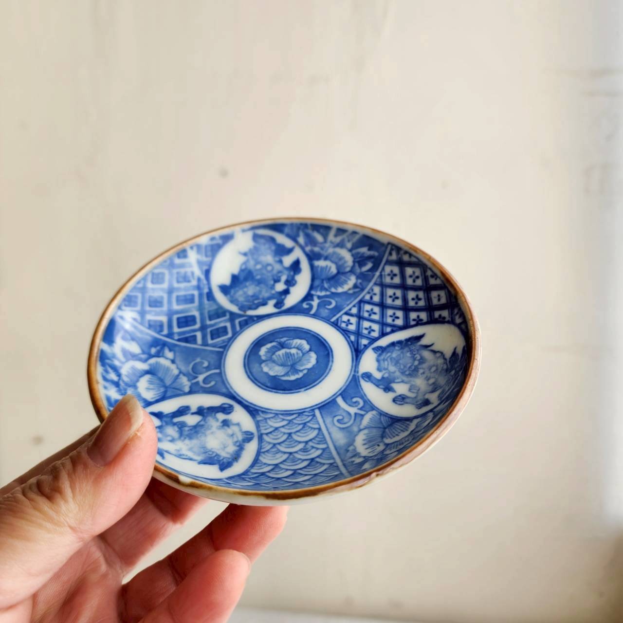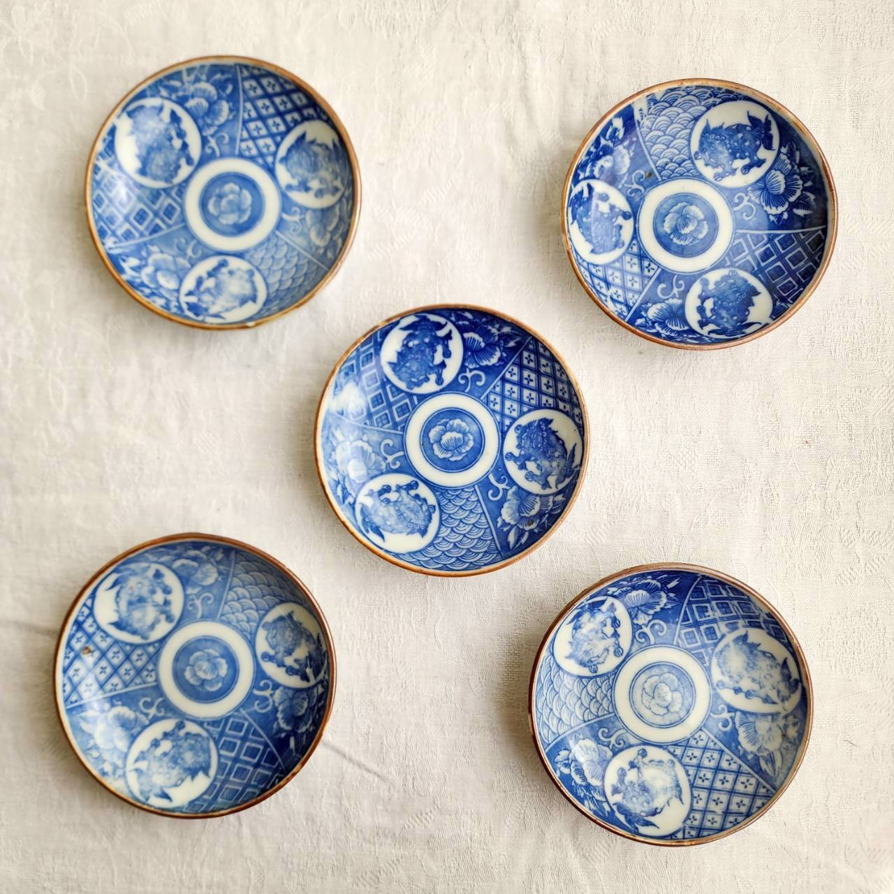 昭和初期 印判手塩皿 獅子文様 5枚組 a