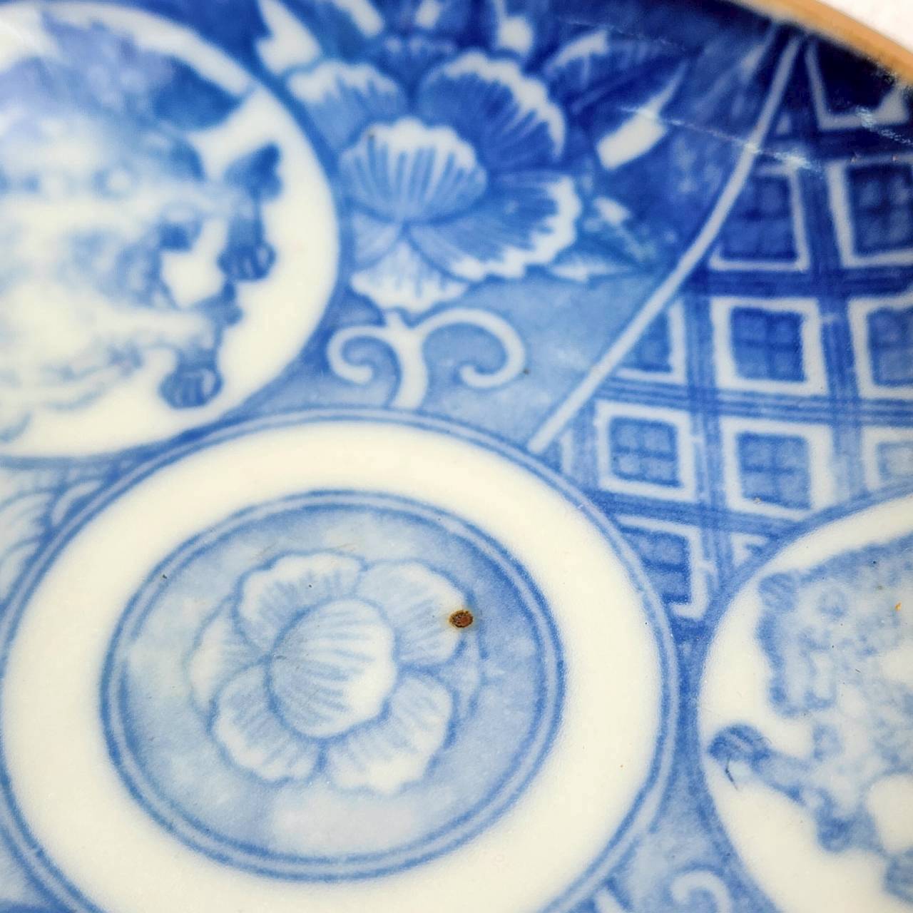 時代を経た痛みや作成時の歪み、焼き付けの際に出る色むら・釉薬切れ・窯傷・ふりもの(注1)などございますが、古い物の味わいとお楽しみくださいませ。