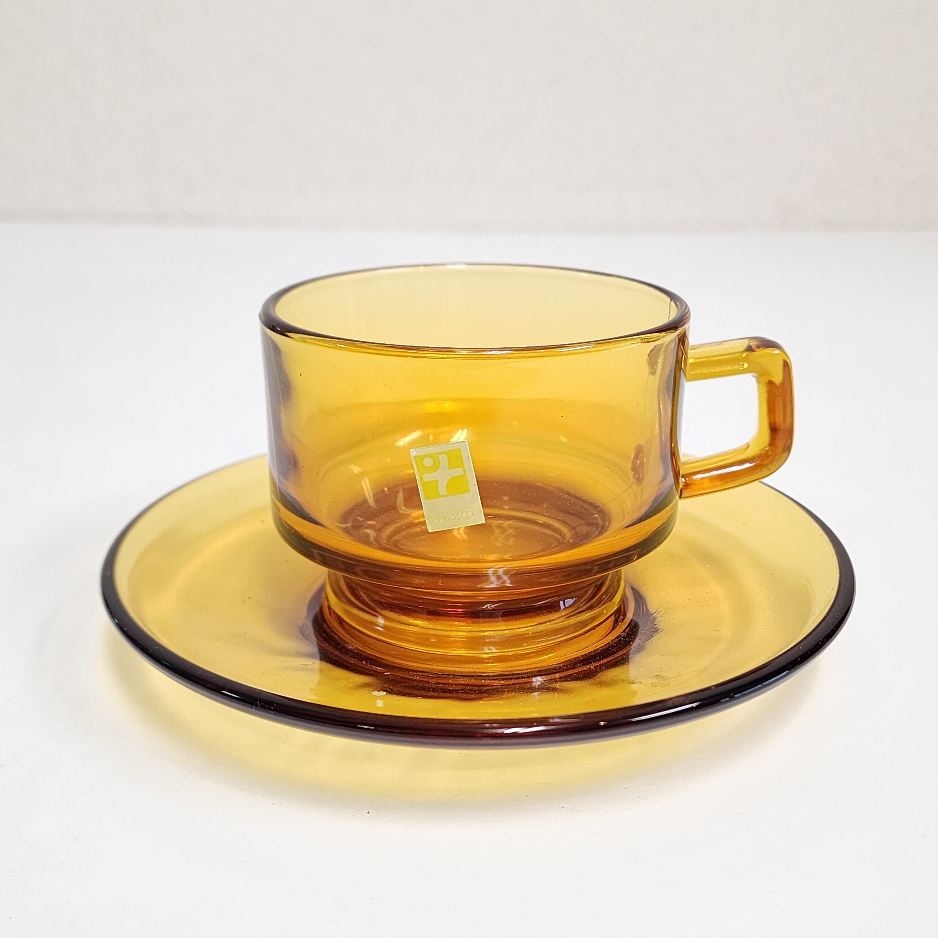 日本製アンバー硝子 カップ&ソーサ4客セットになります。