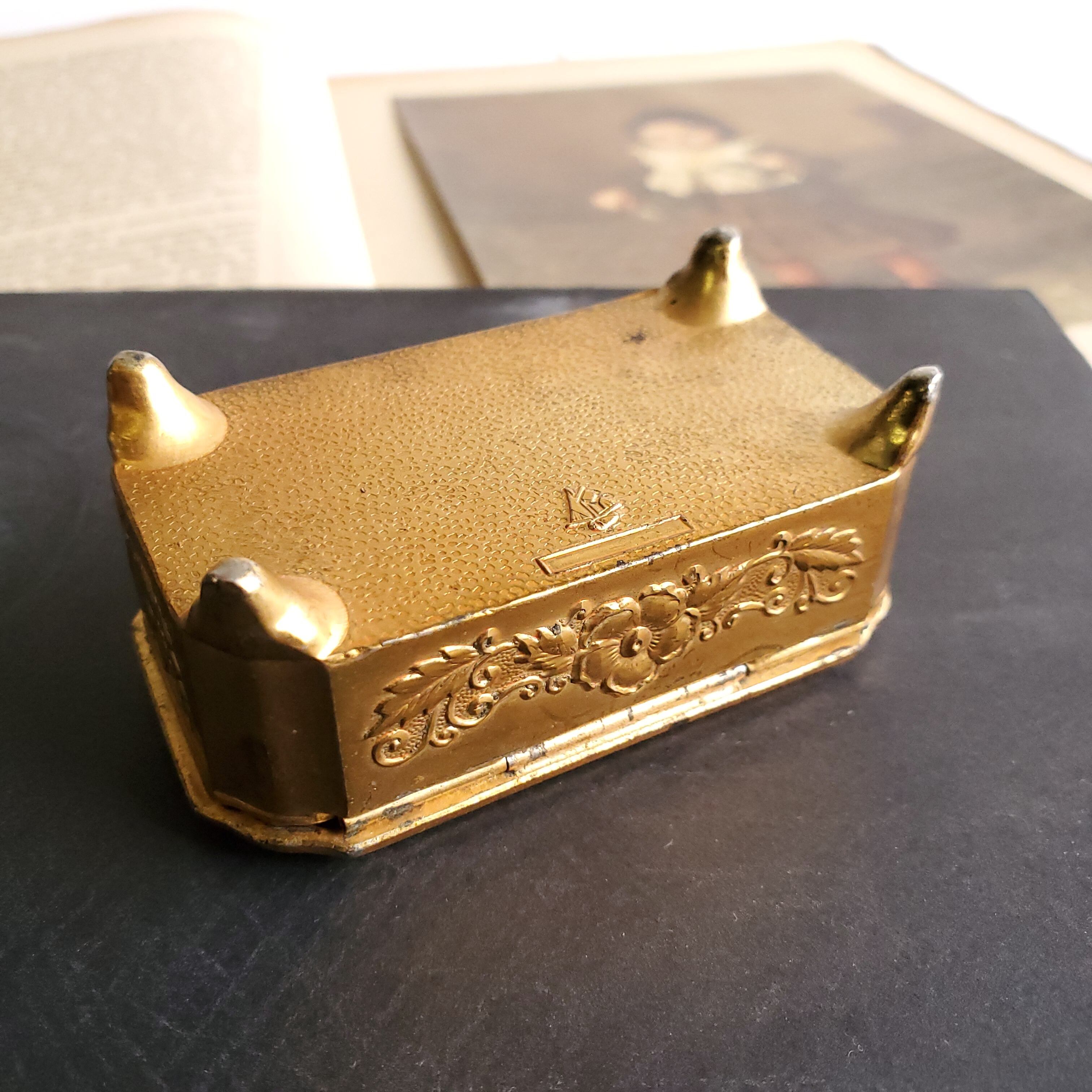 ラインストーンがキラキラと輝き、アールデコ調の彫刻が心をくすぐる 小ぶりなジュエリーボックスです。