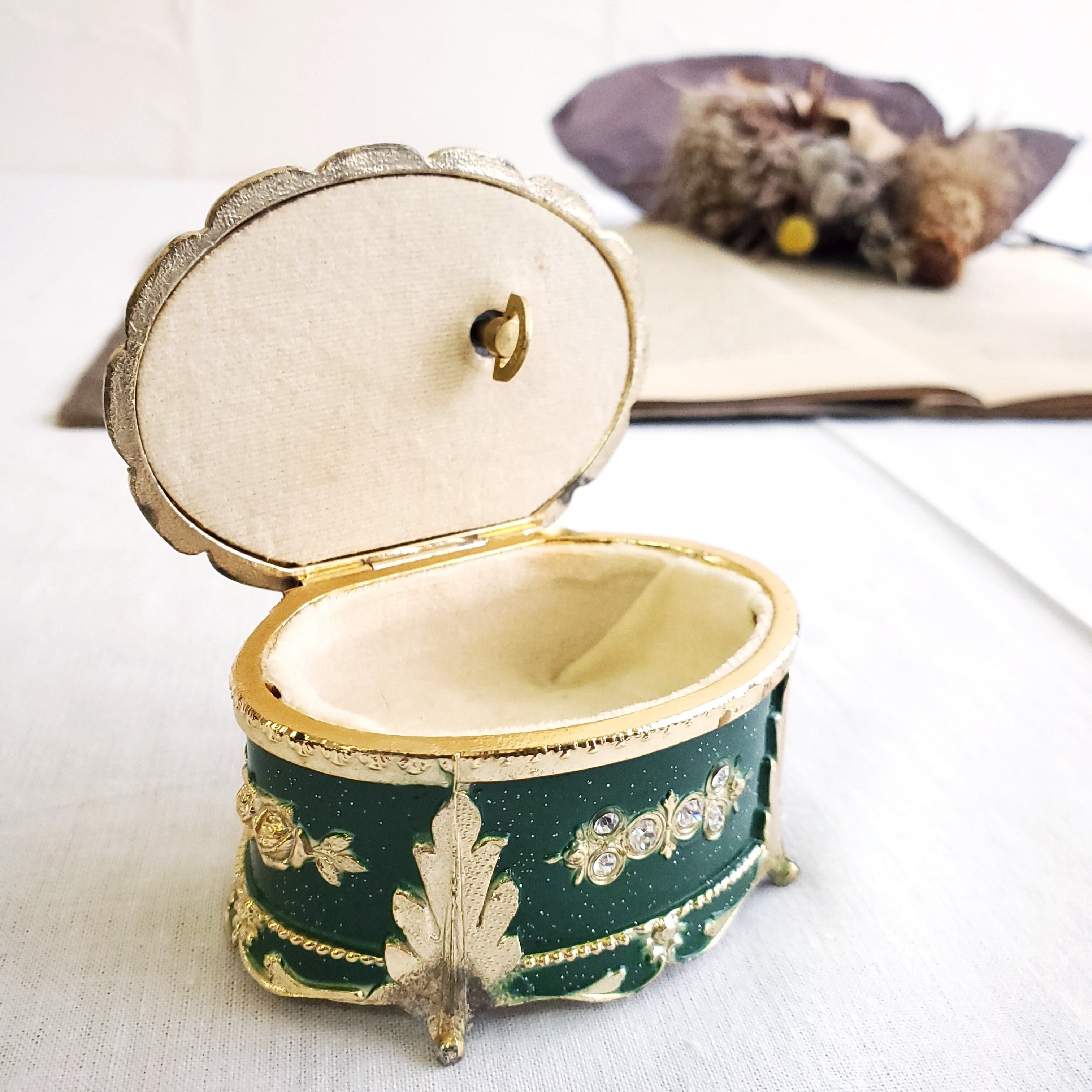 キラキラしたグリーンのボディとビジューが宝石箱のようで 乙女心をくすぐります。