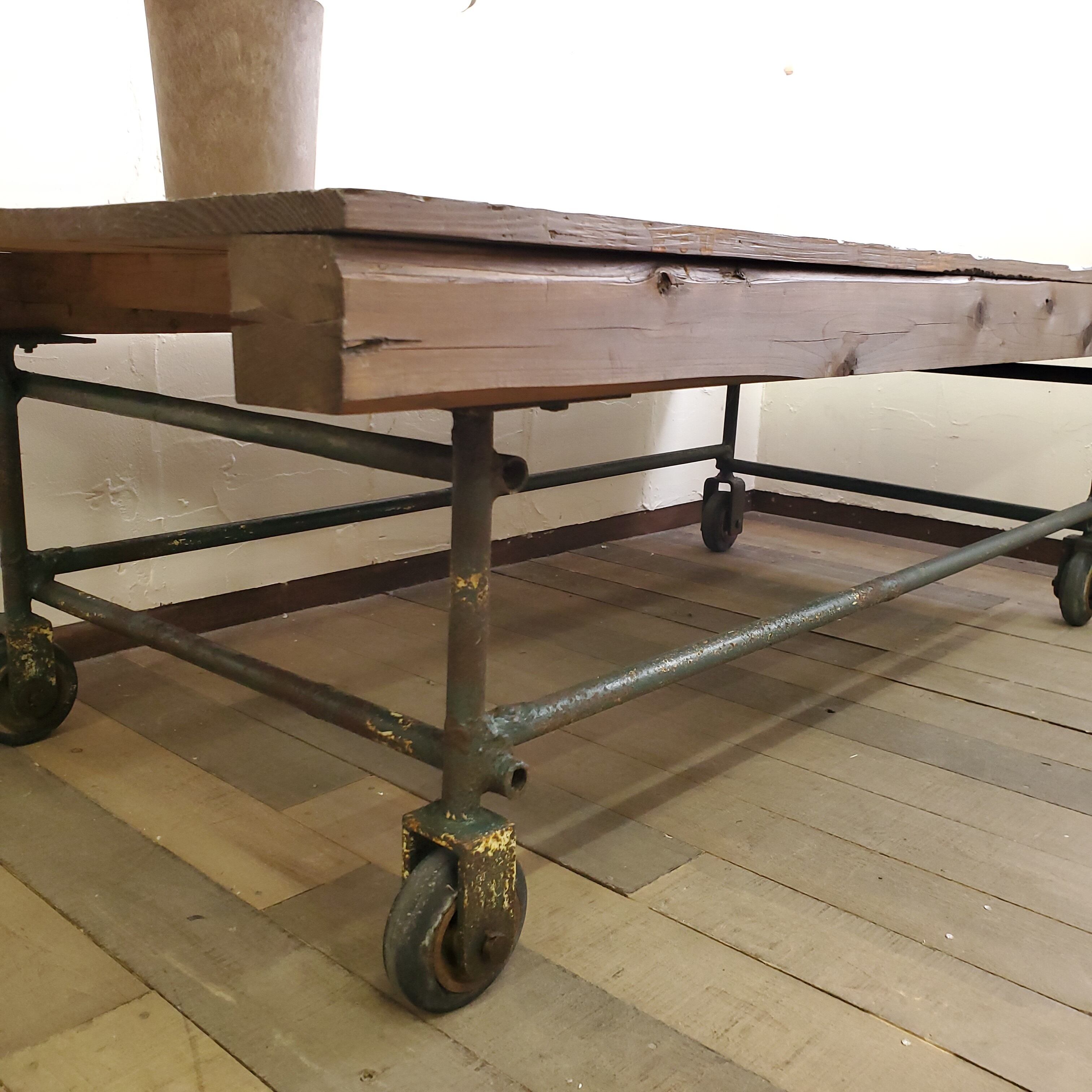 元は工場や農家で台車として使われていたビンテージ トロリーです。