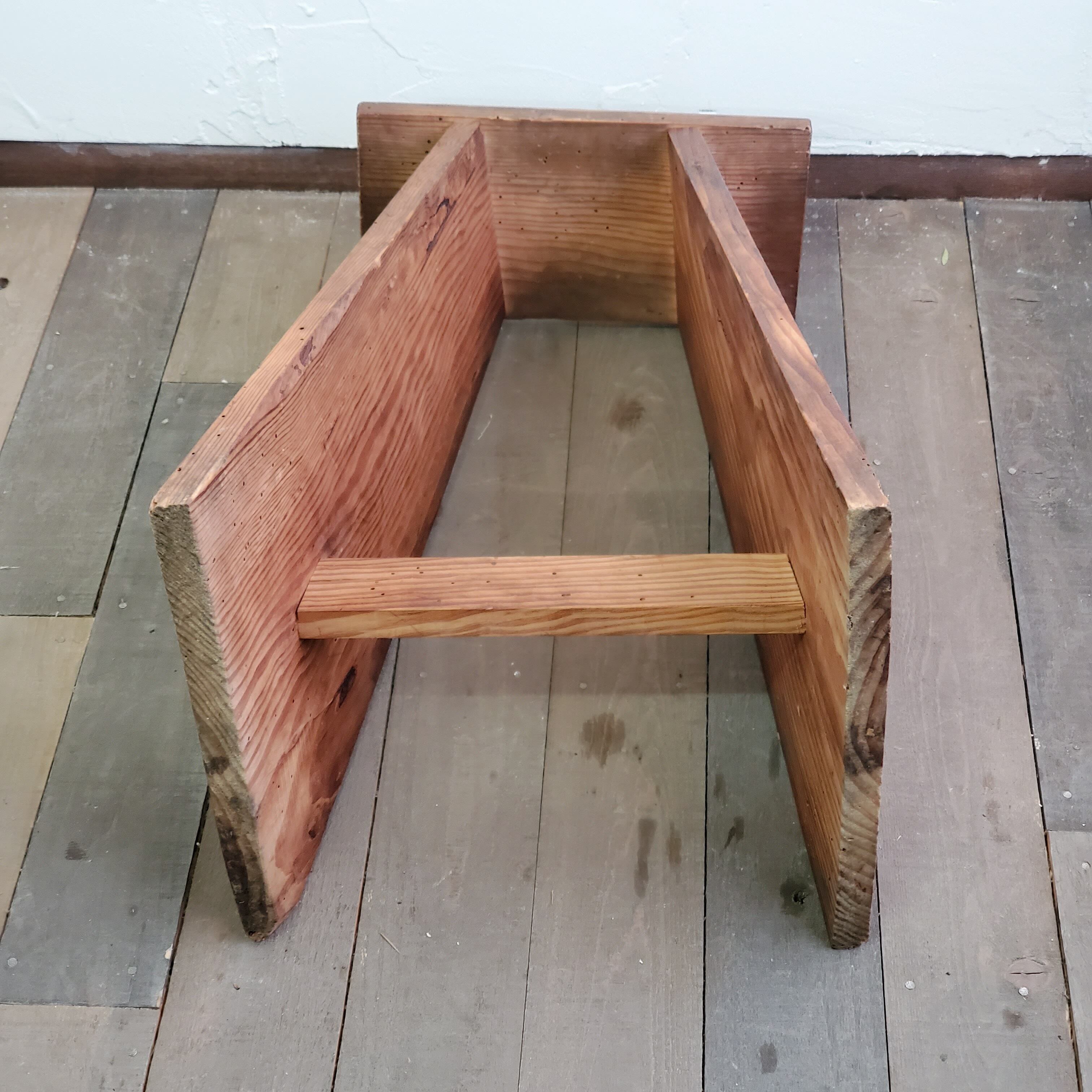 古い木製の踏み台で、程よい木肌感が時代を感じるお品です。