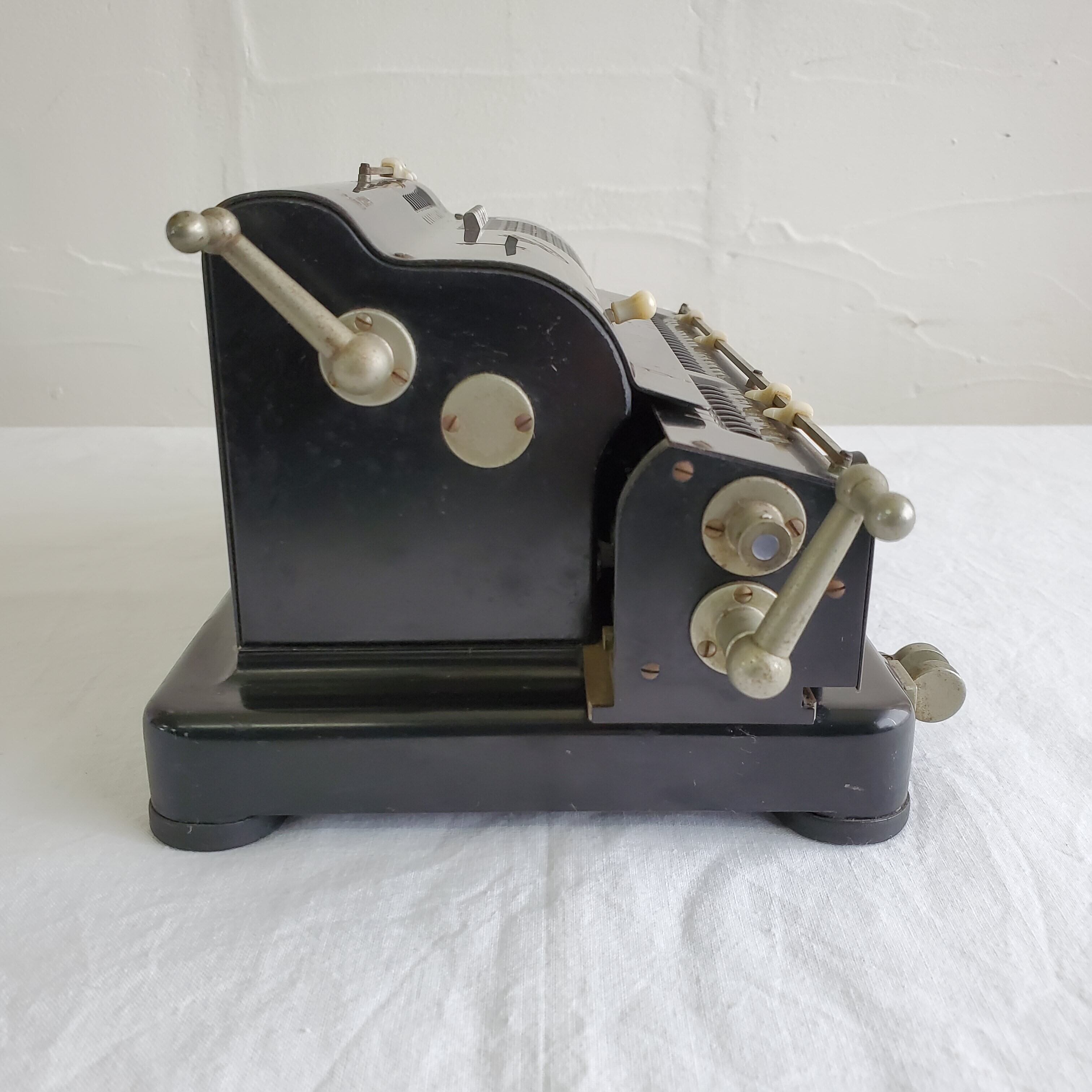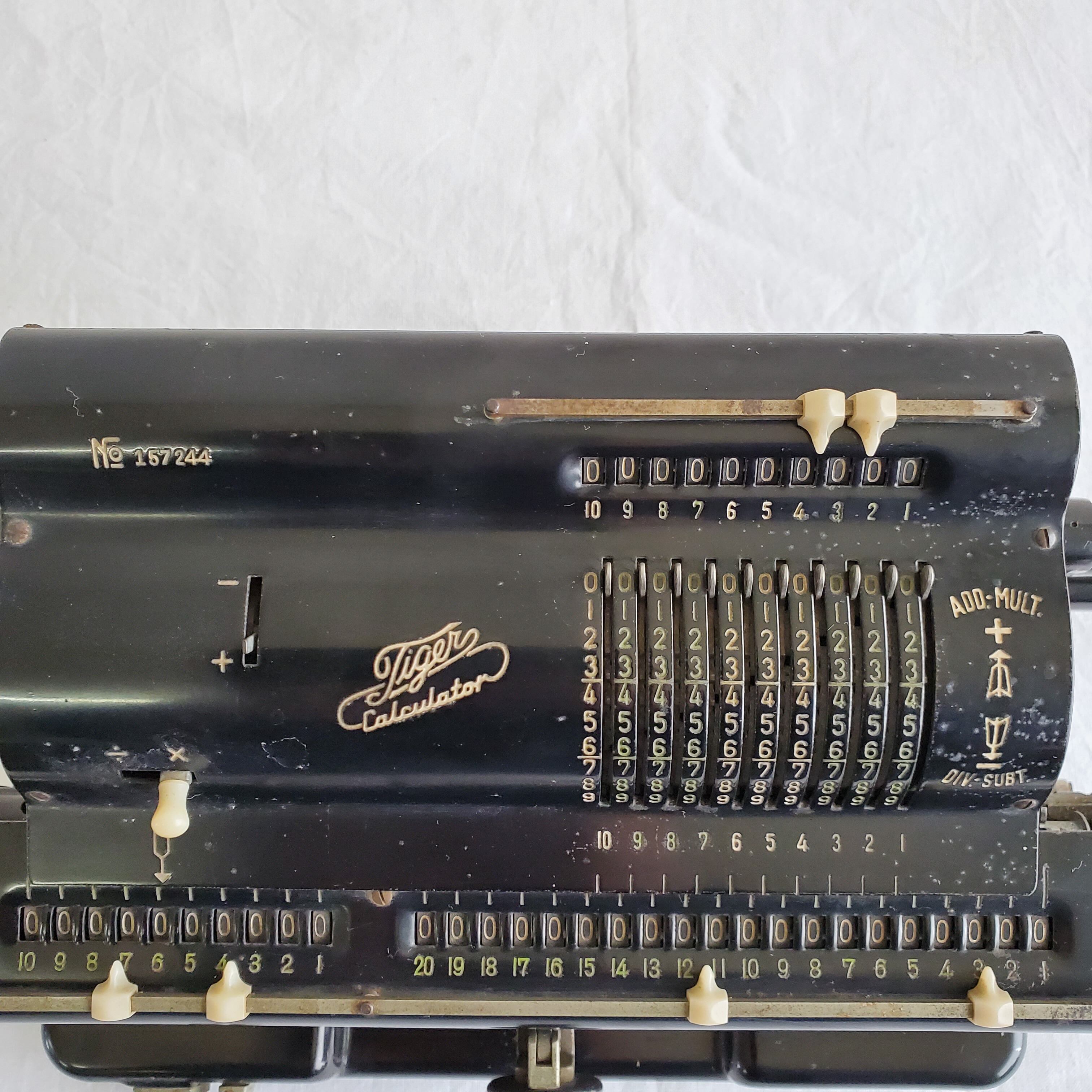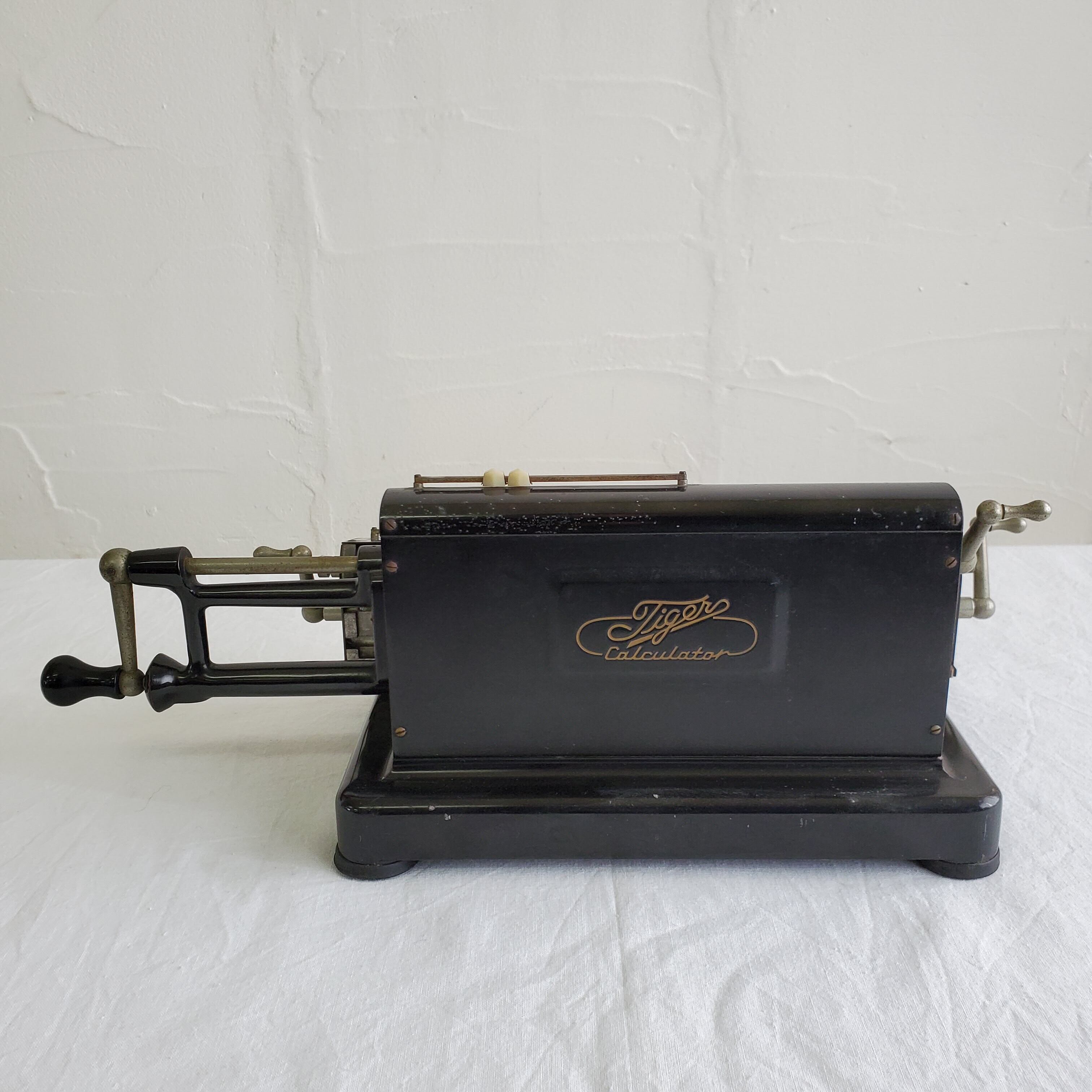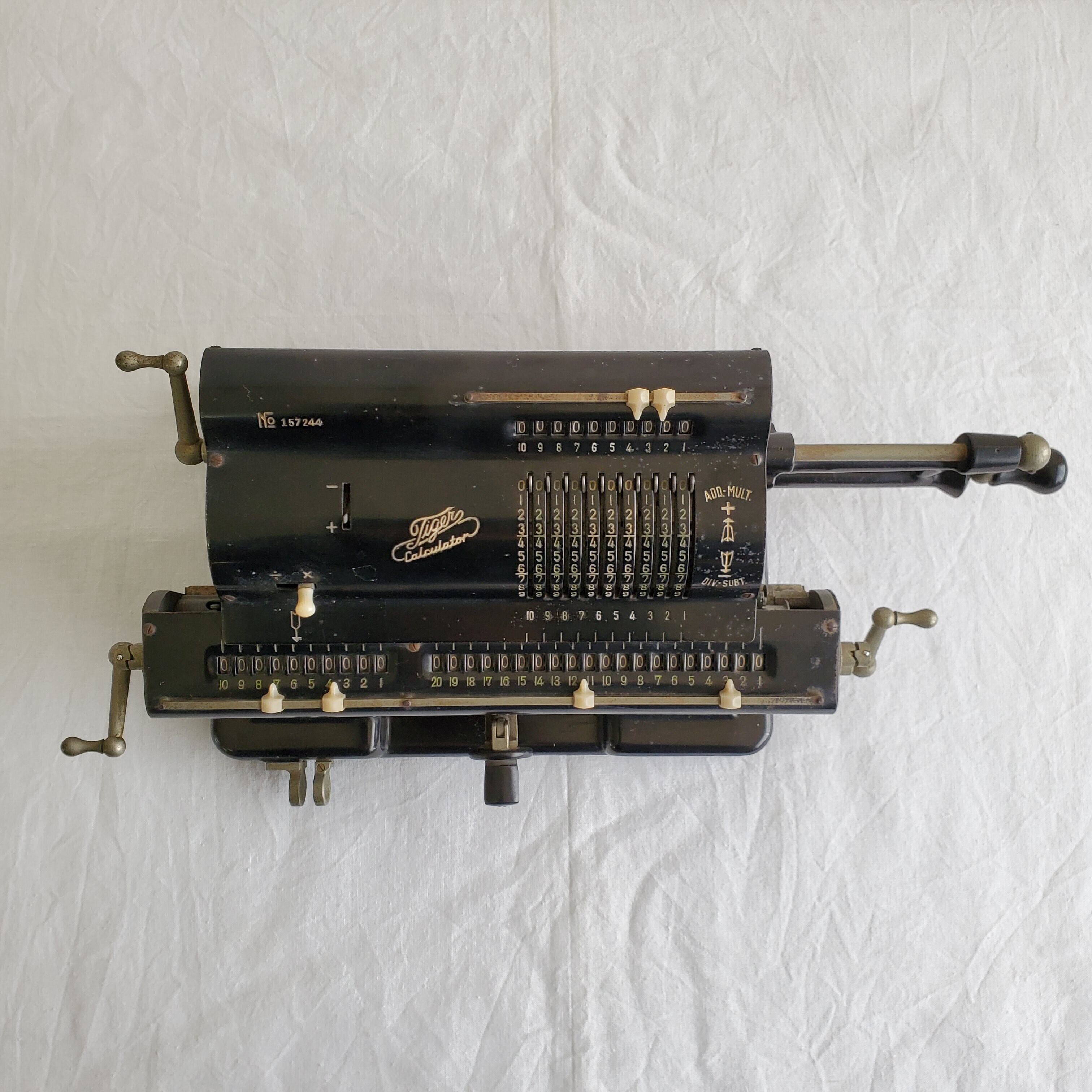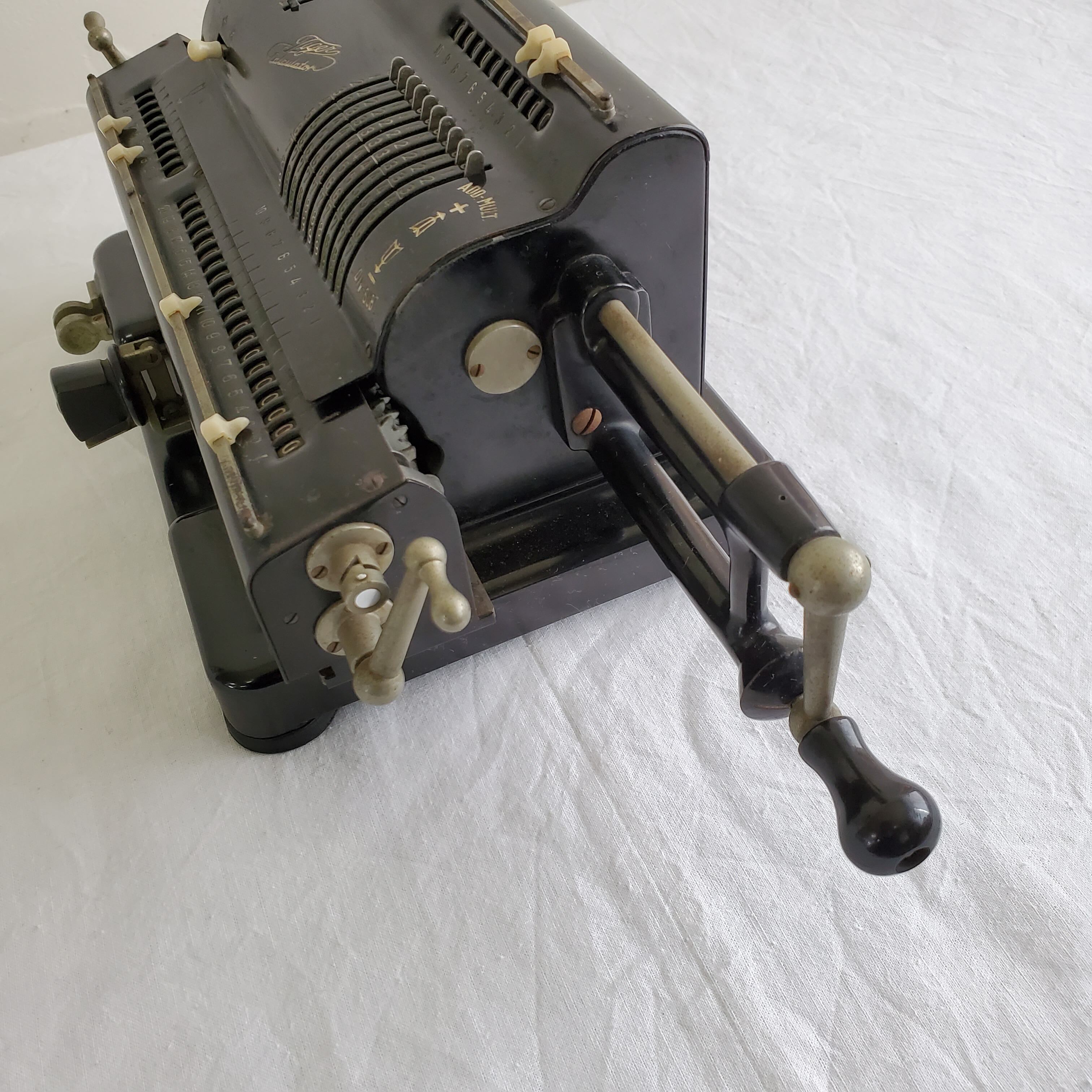 落ち着いた雰囲気に心和まされる手回しタイプの計算機です。。