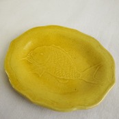 珉平焼 黄釉 鯛文小判皿 5枚になります。
