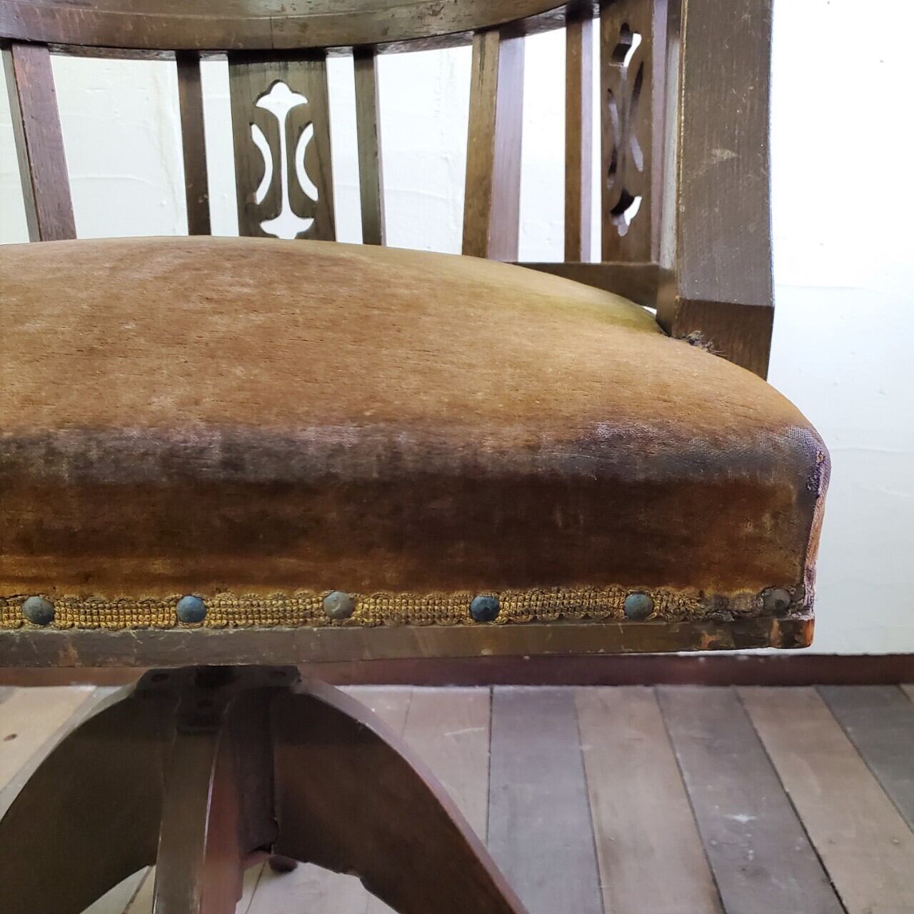 ゆったりとした座り心地と使い込まれた味のある木製の肘置きのバランスも良く什器など、インテリアのアクセントにも抜群のお品です。
