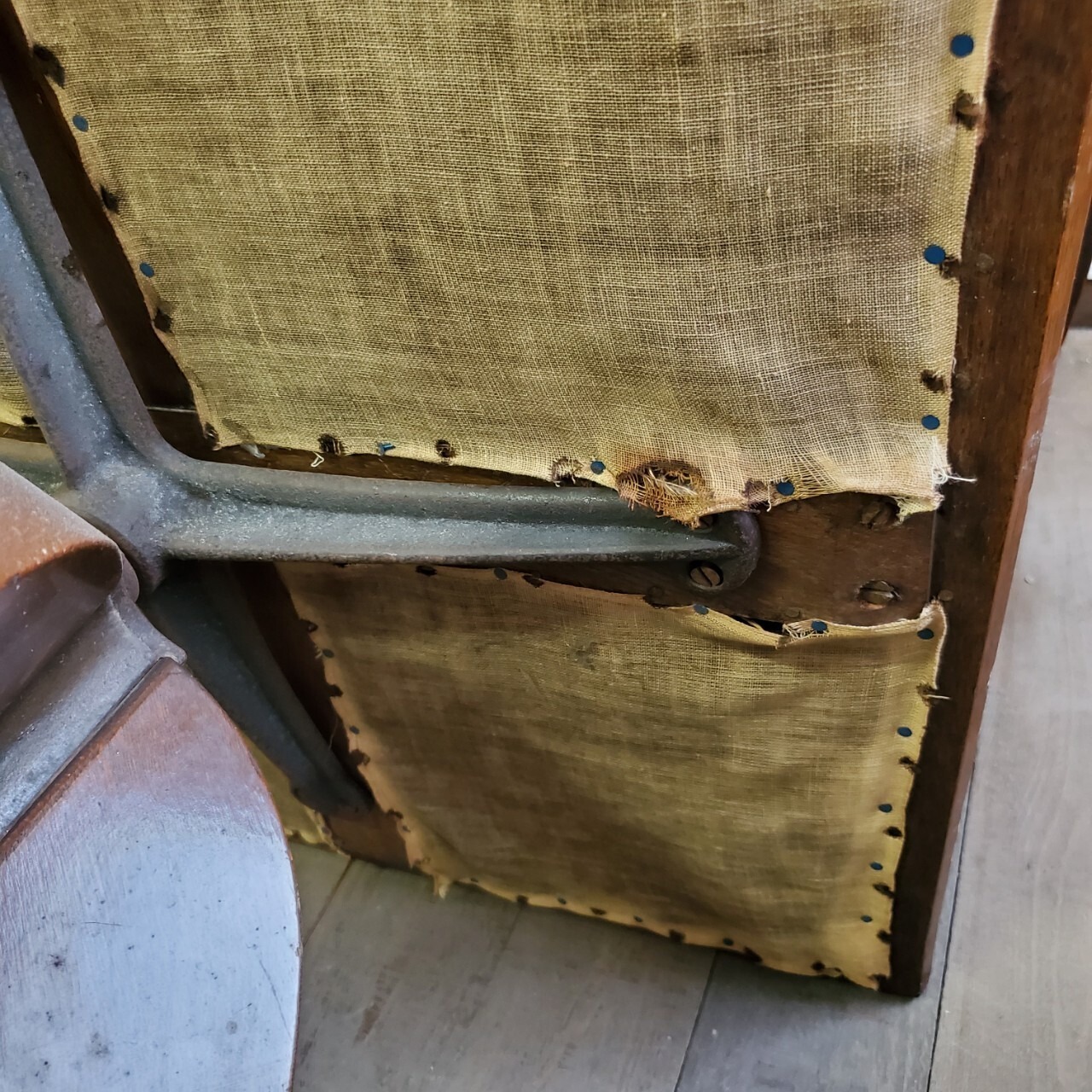 ゆったりとした座り心地と使い込まれた味のある木製の肘置きのバランスも良く