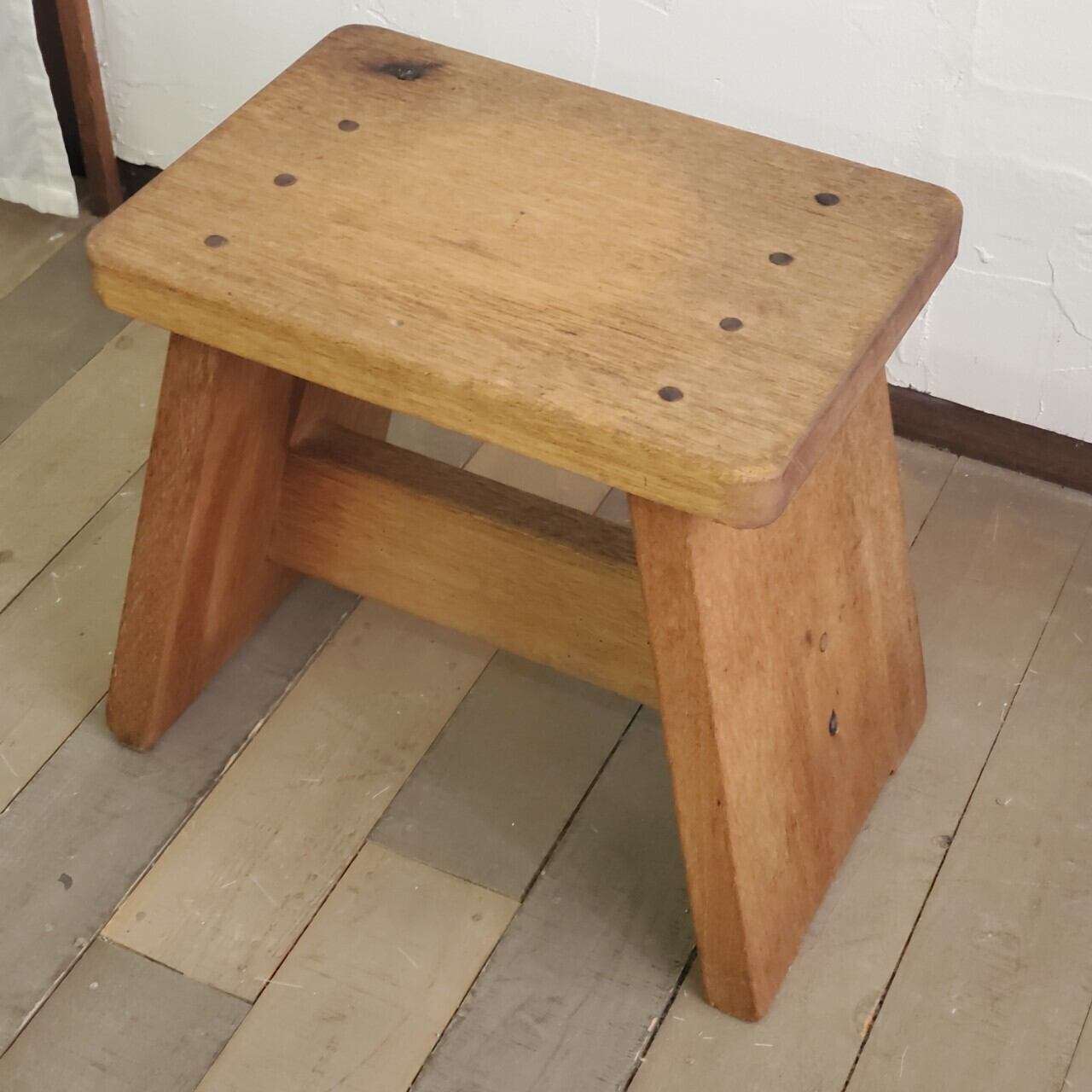 時を経て使い勝手と共に味わいを増す、古い木製のㇵの字のスツールです。