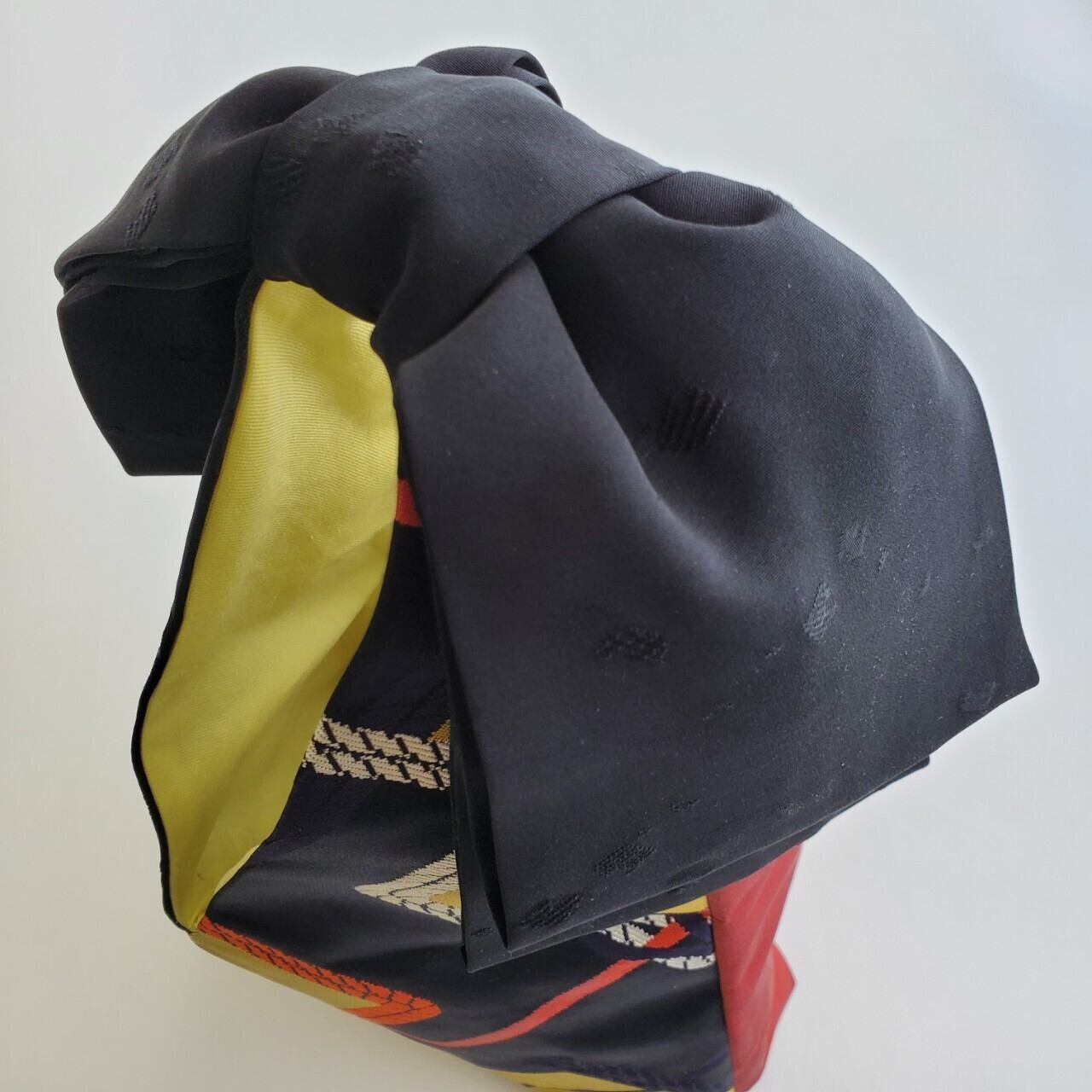 ミニリボンバッグ 正絹帯地 漆箔縁結文様【着物・帯のリメイク】/SDGs リメイク リサイズ 花 金地 黒留め お洒落 お出かけ フォーマル 未来へ