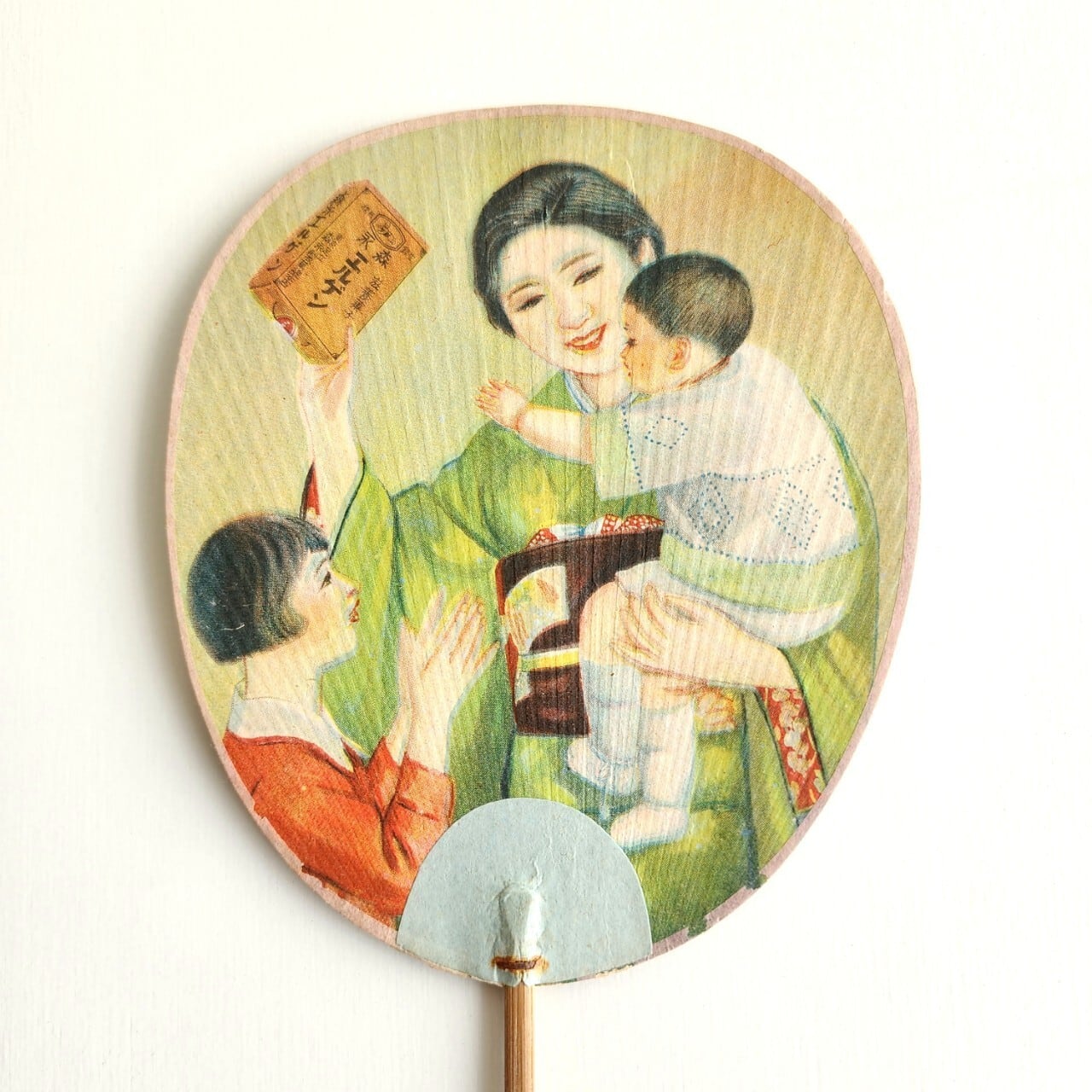 昭和初期の森永製菓の菓子箱が描かれた珍しいうちわです。